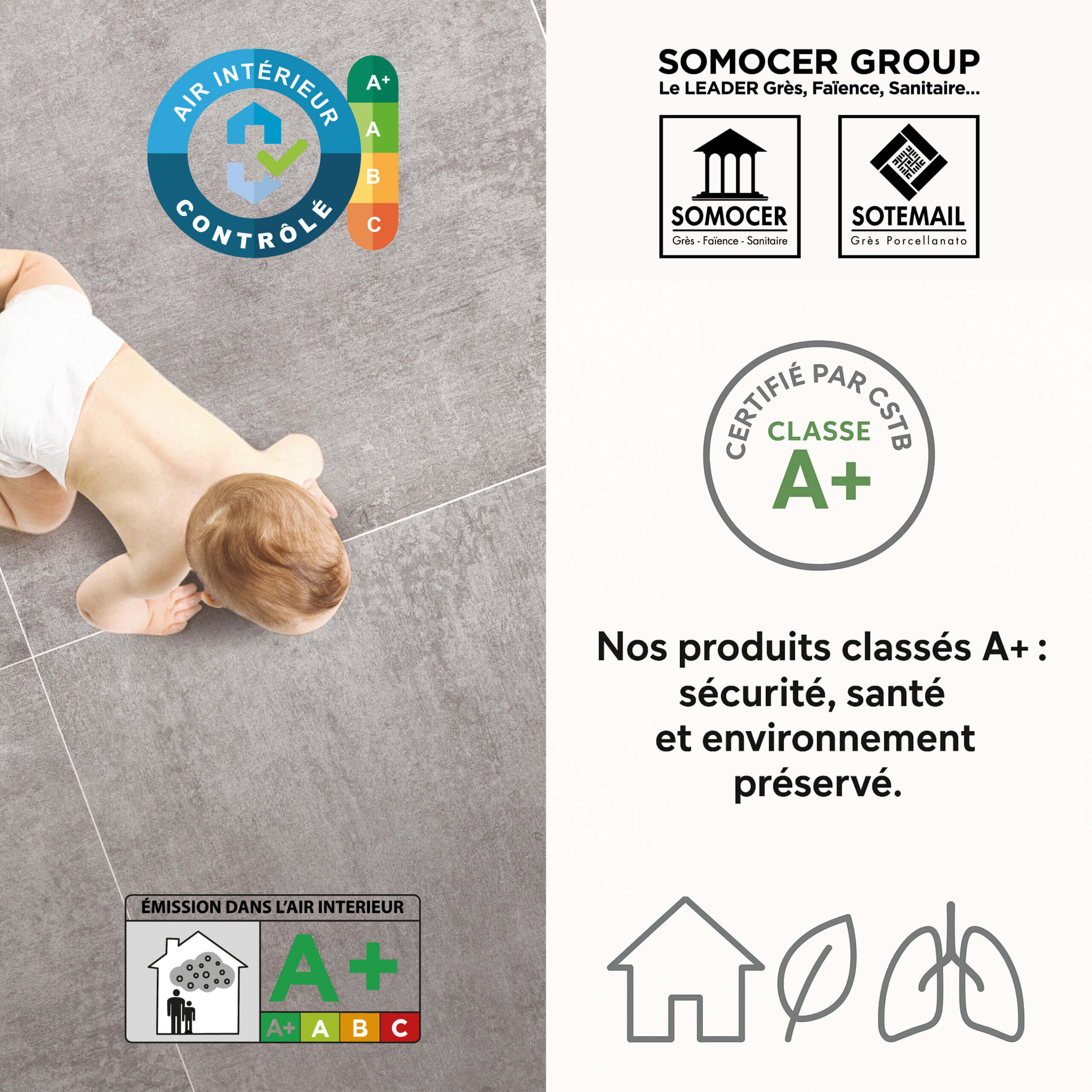 Thanks to the A+ certification issued by CSTB, SOMOCER Group ensures the safety and well-being of users.